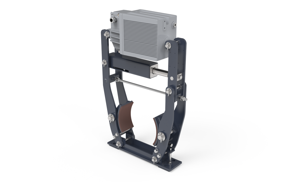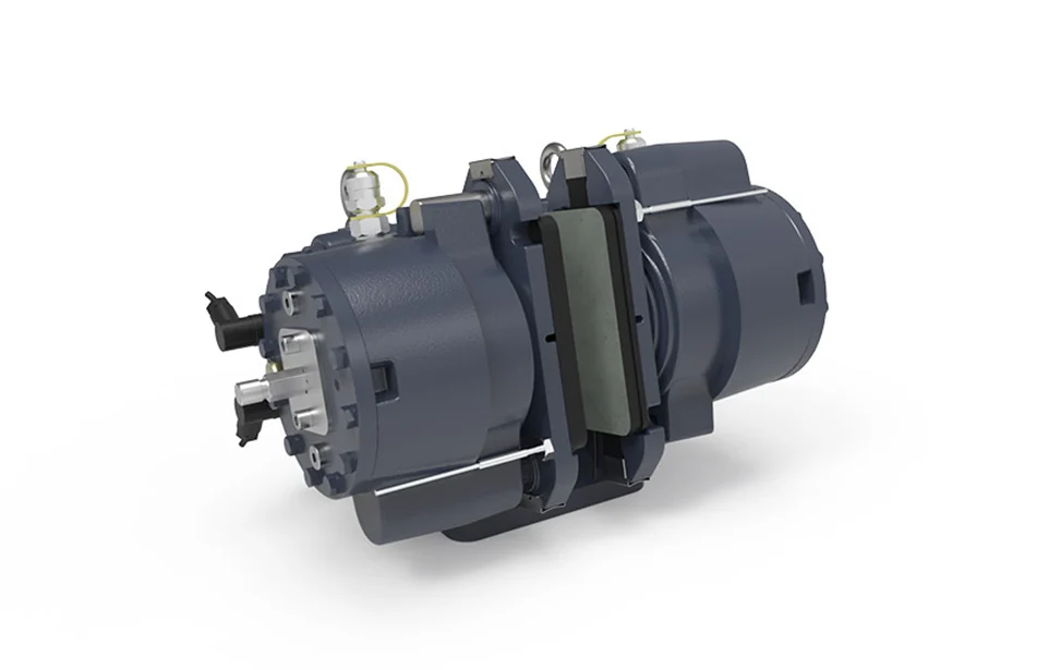 这些安全制动器是弹簧施加的,并通过电液推进器释放。它们配备了自动磨损补偿,无论衬垫磨损如何,都能确保恒定的扭矩。