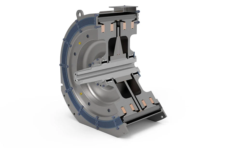 这些安全鼓式制动器采用弹簧应用、电液推进器释放。配备自动磨损补偿,无论衬垫磨损如何,都能确保恒定的扭矩,但也可以集成许多其他选项。