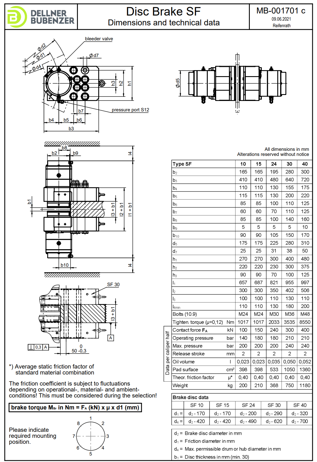 SF 10-40卡钳制动器采用液压驱动,可提供高达4000 Nm的制动力矩,以确保设备在高速运转中能够安全停止。该制动器的优秀性能来源于其独特的设计,包括特殊的制动盘、卡钳和摩擦材料,以及精确的制动力矩调节系统。