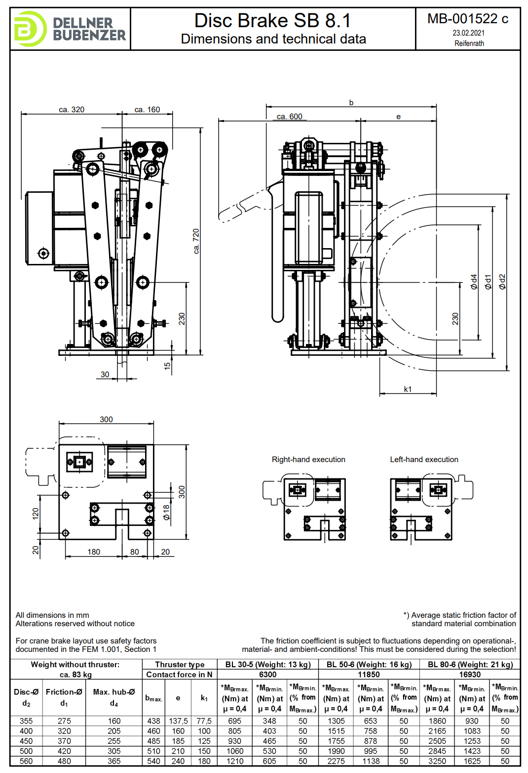 DELLNER BUBENZER SB8盘式制动器的制动力矩可达4000 Nm,适用于中小型设备,具有良好的适应性和可靠性。它还可以与其他Dellner Bubenzer制动器组合使用,形成一个完整的制动系统,以满足不同应用需求。